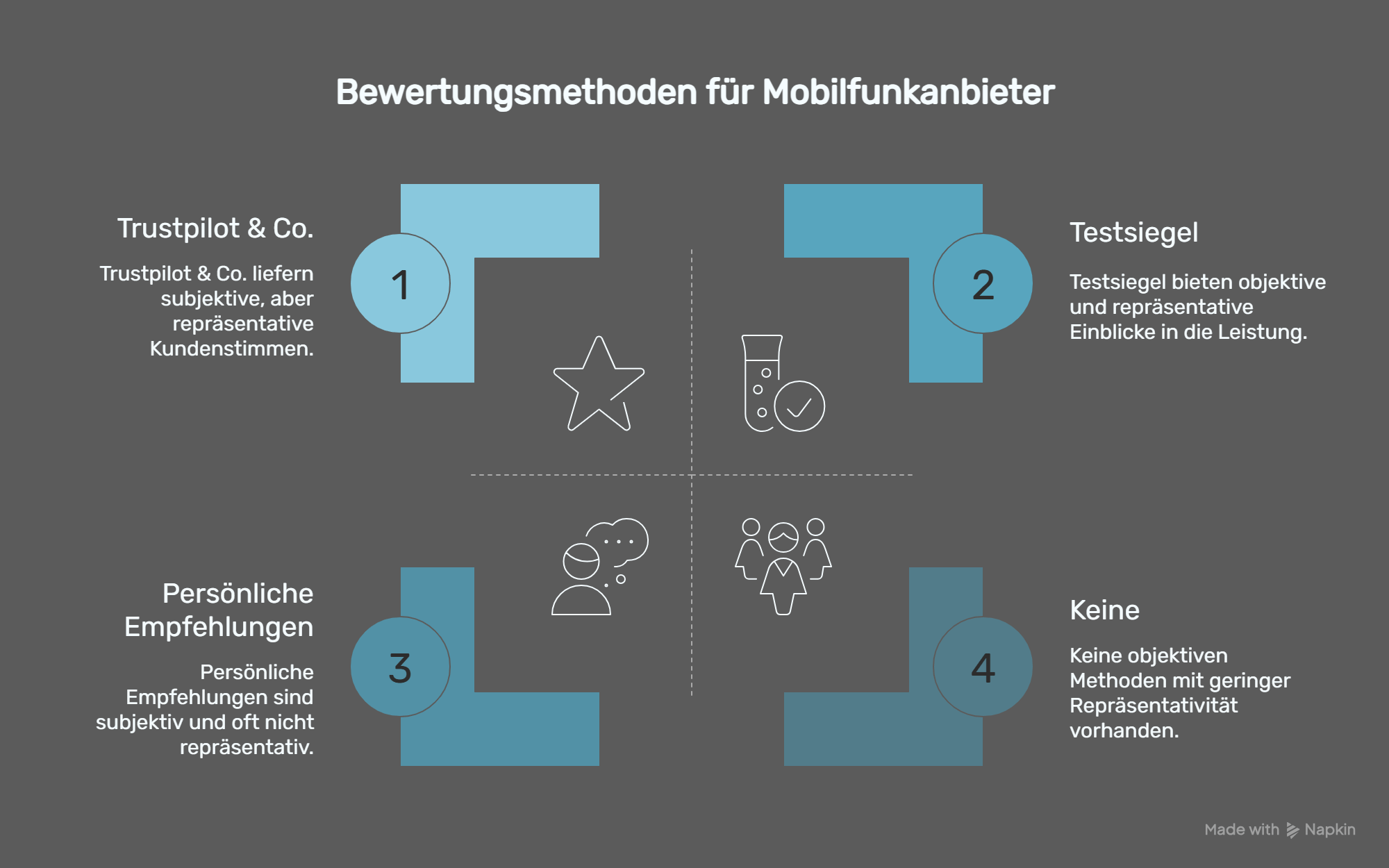 Keine einzelne Quelle kann ein vollständiges und objektives Bild der Mobilfunkqualität liefern. Erst die Kombination aus unabhängigen Tests, verifizierten Bewertungen und persönlichen Erfahrungen ergibt eine solide Grundlage für eine seriöse Entscheidung.